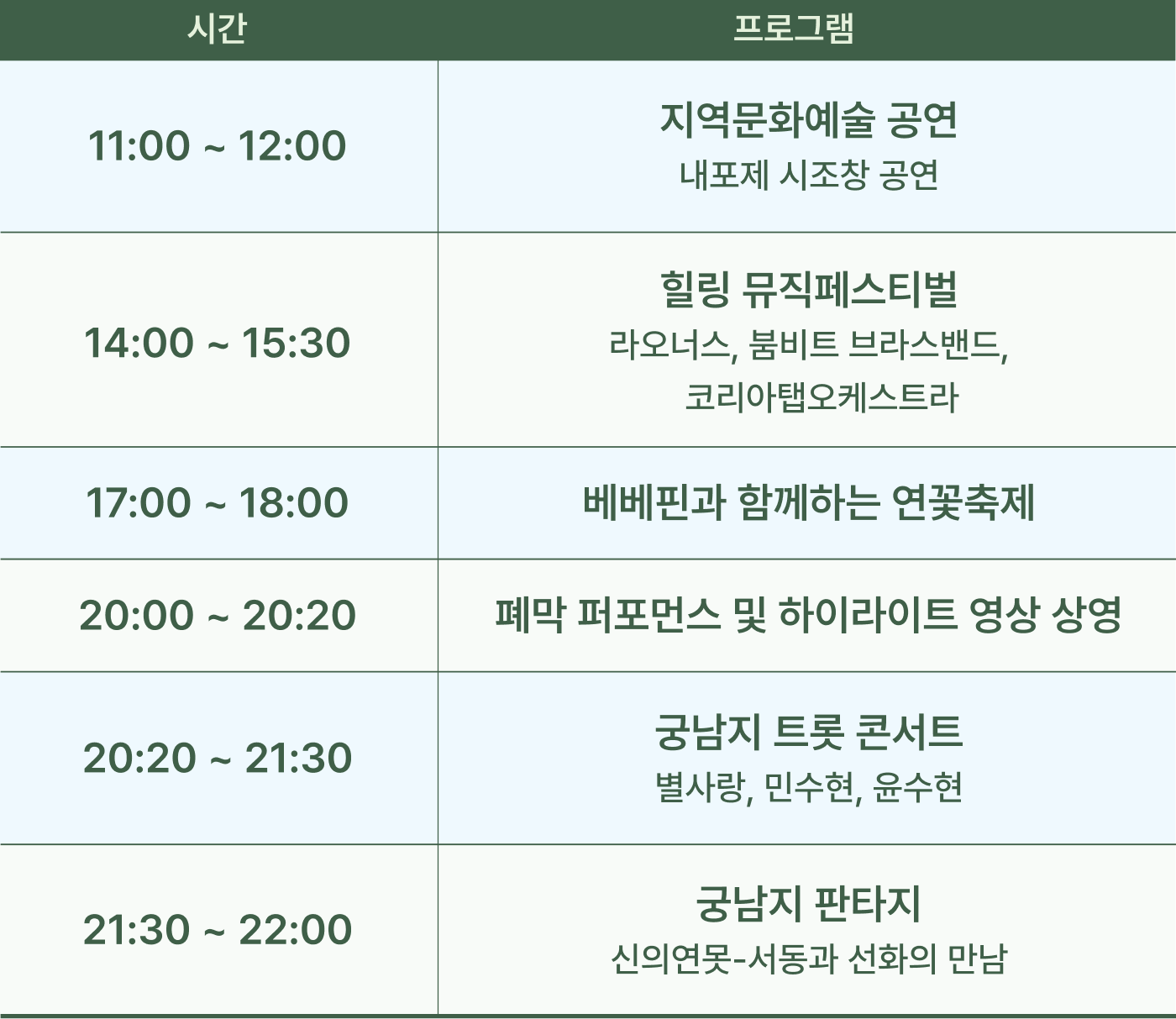 경연 프로그램: 연꽃을 주제로 한 다양한 경연 대회.