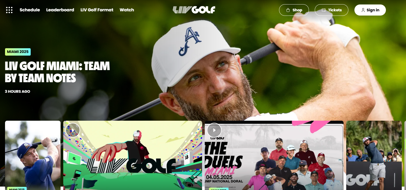 - LIV Golf 공식 홈페이지: 실시간 스트리밍