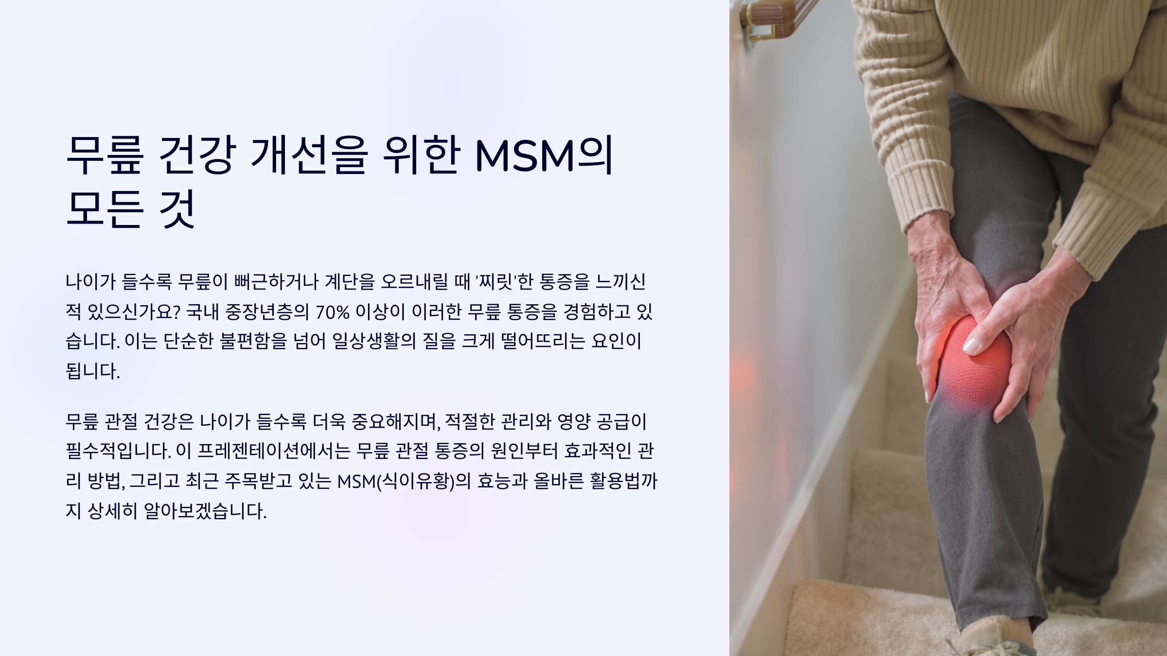이 글에서는 무릎 관절에 좋은 약과 MSM이 왜 중요한지,